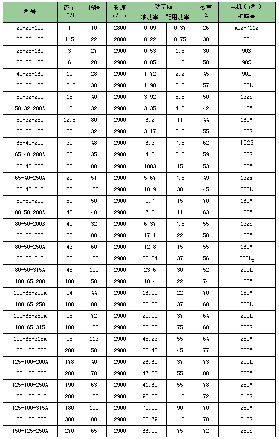 離心式熱油泵型號(hào)表示:以BRY50-32-200A為例BRY 50-32-200 ABRY表示:熱油泵50表示: 泵體入口直徑(mm)32表示:風(fēng)冷
